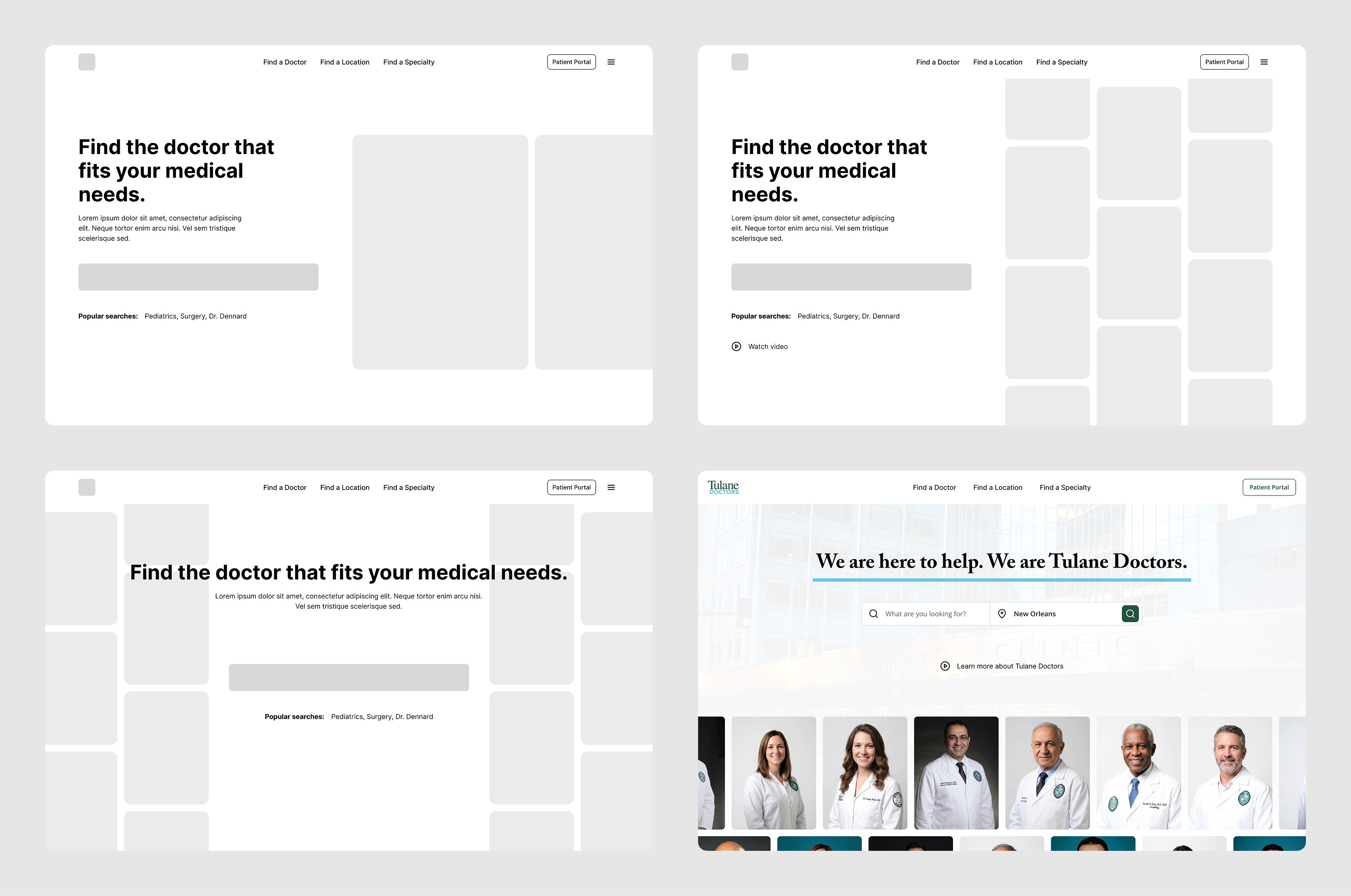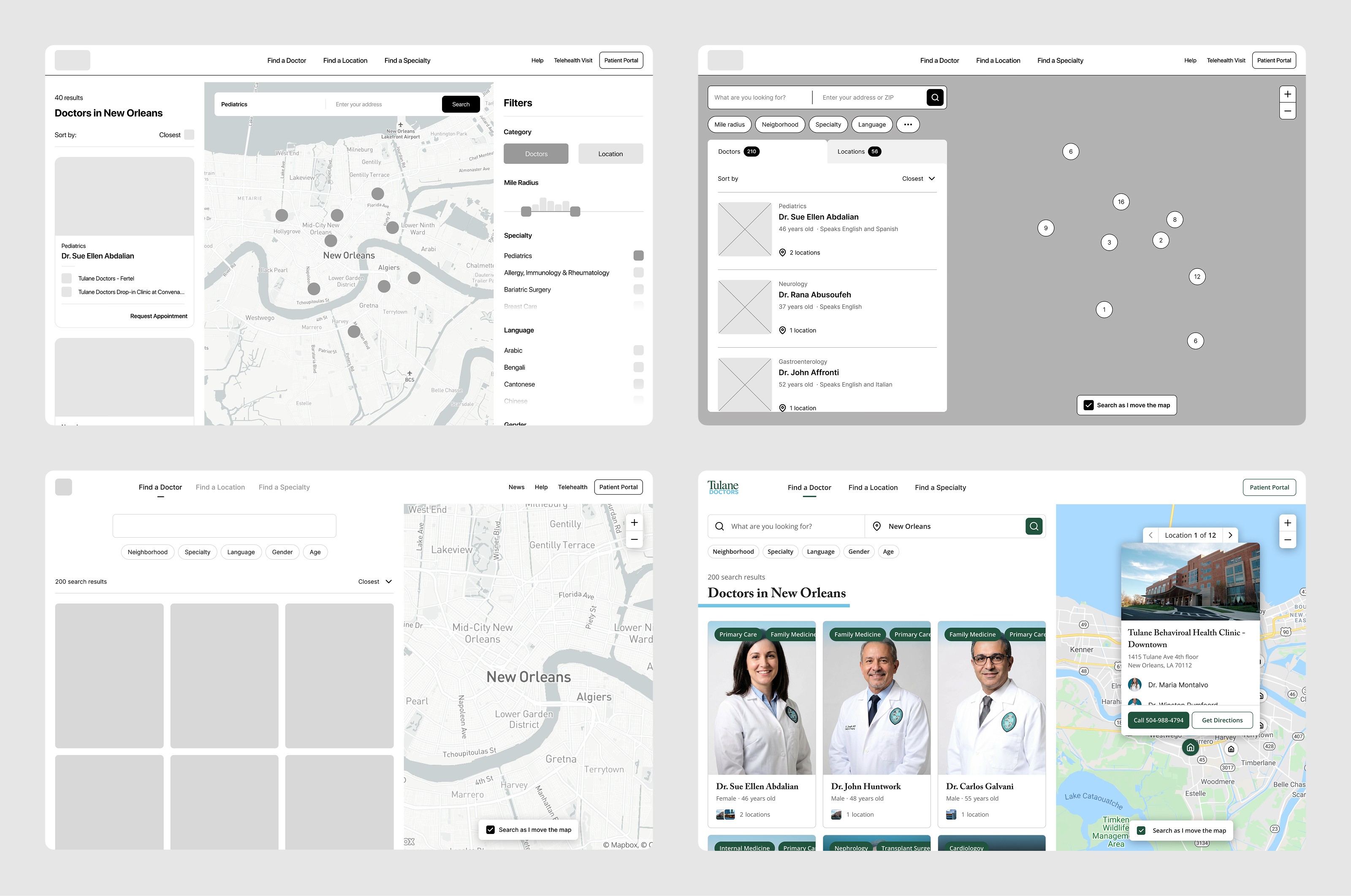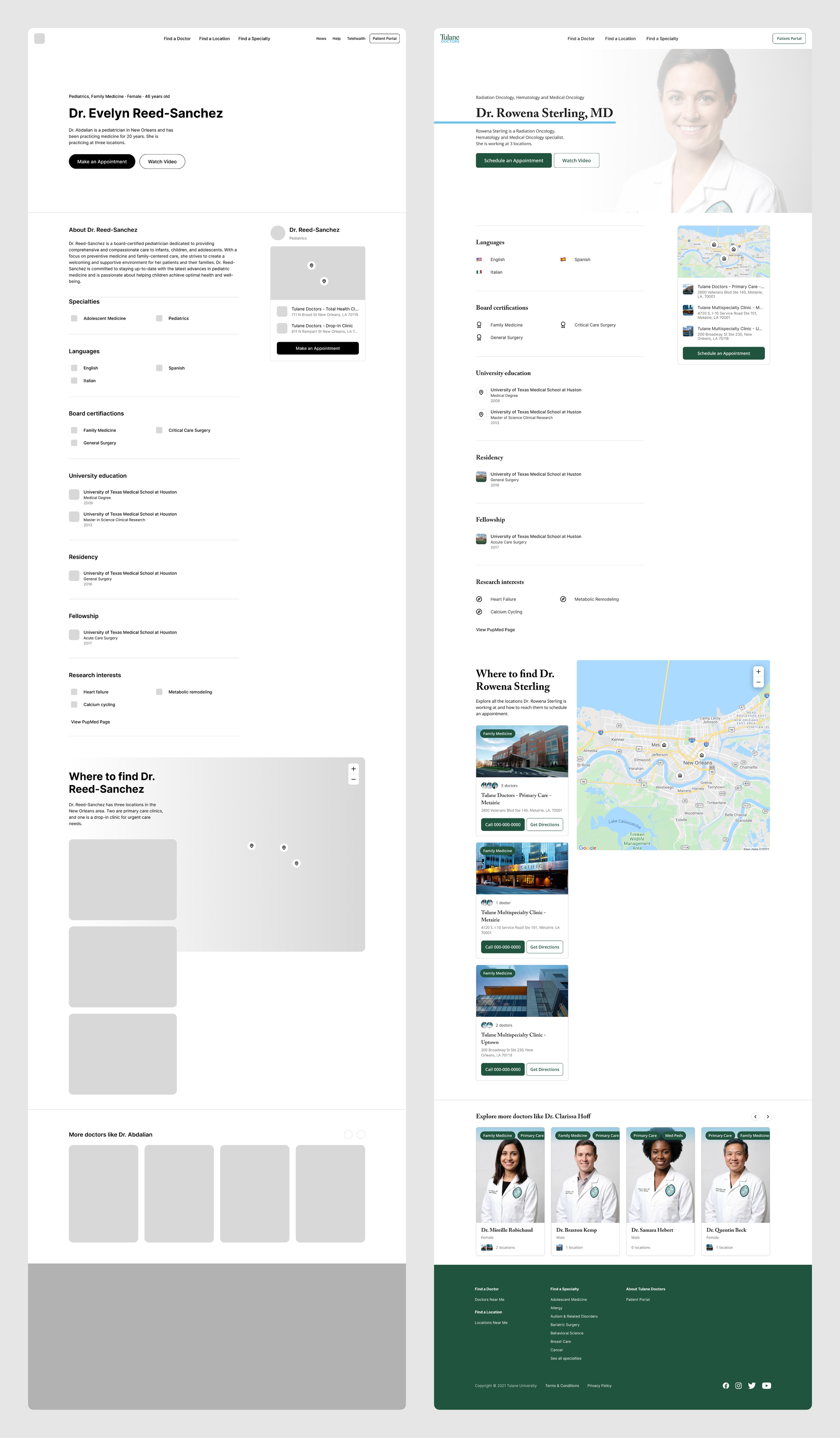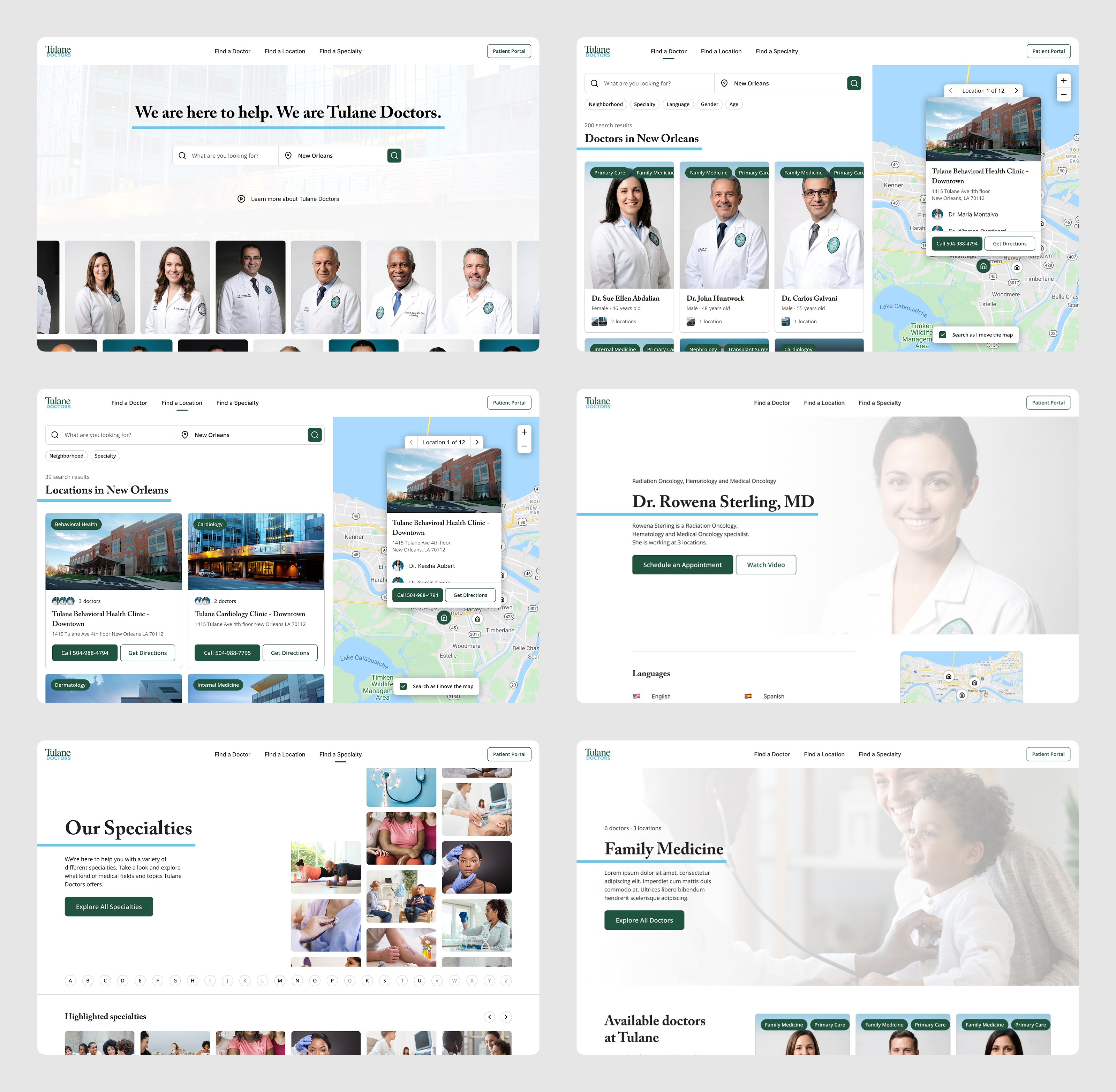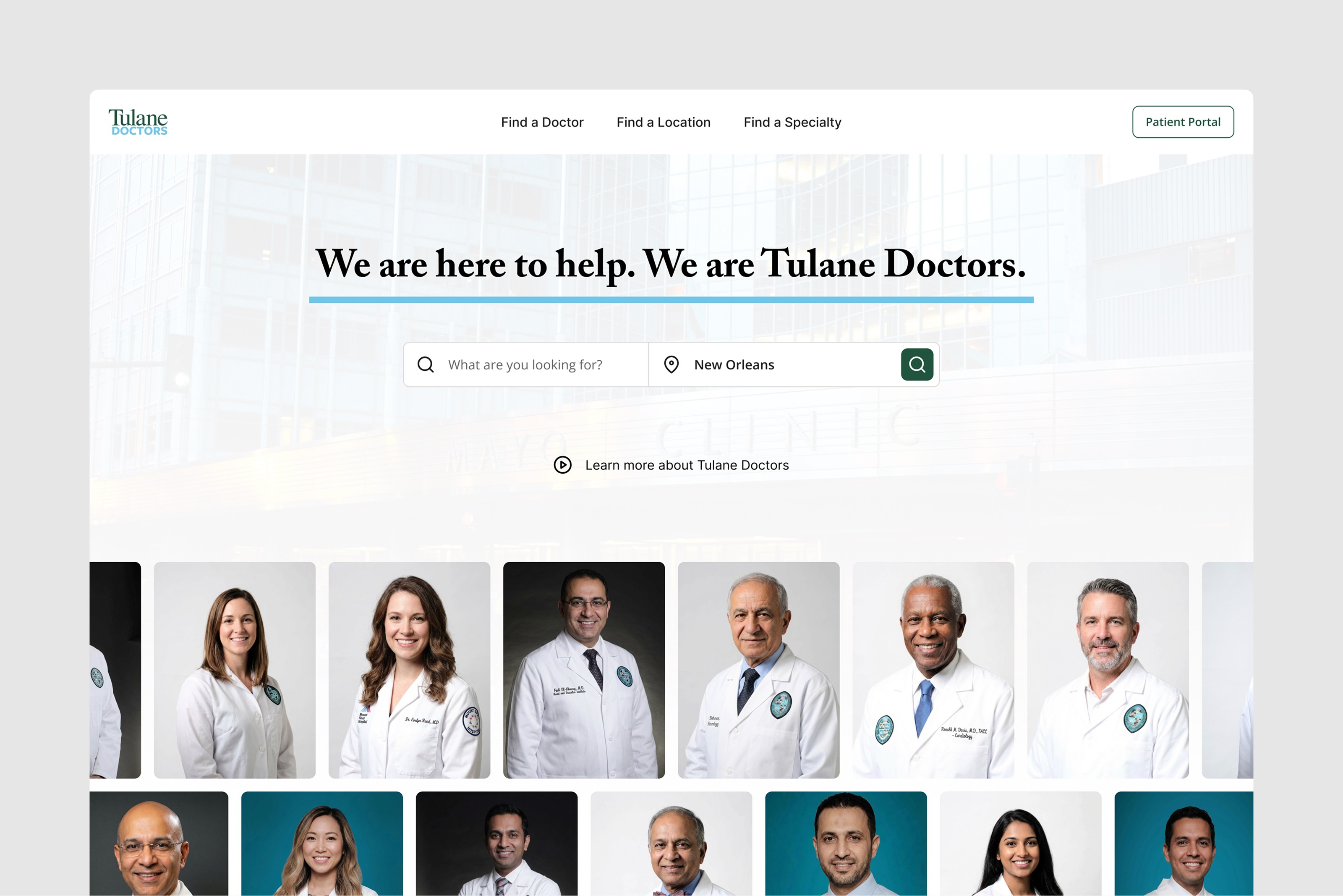The Tulane Doctors website was built to help patients find and schedule care. In practice, seeing a specialist felt harder than it should. Visitors arrived with simple questions: Who treats my symptoms? Is this doctor right for me? How do I book? Instead of clear answers, they encountered academic language, fragmented department sites, inconsistent physician pages, and no online scheduling.
